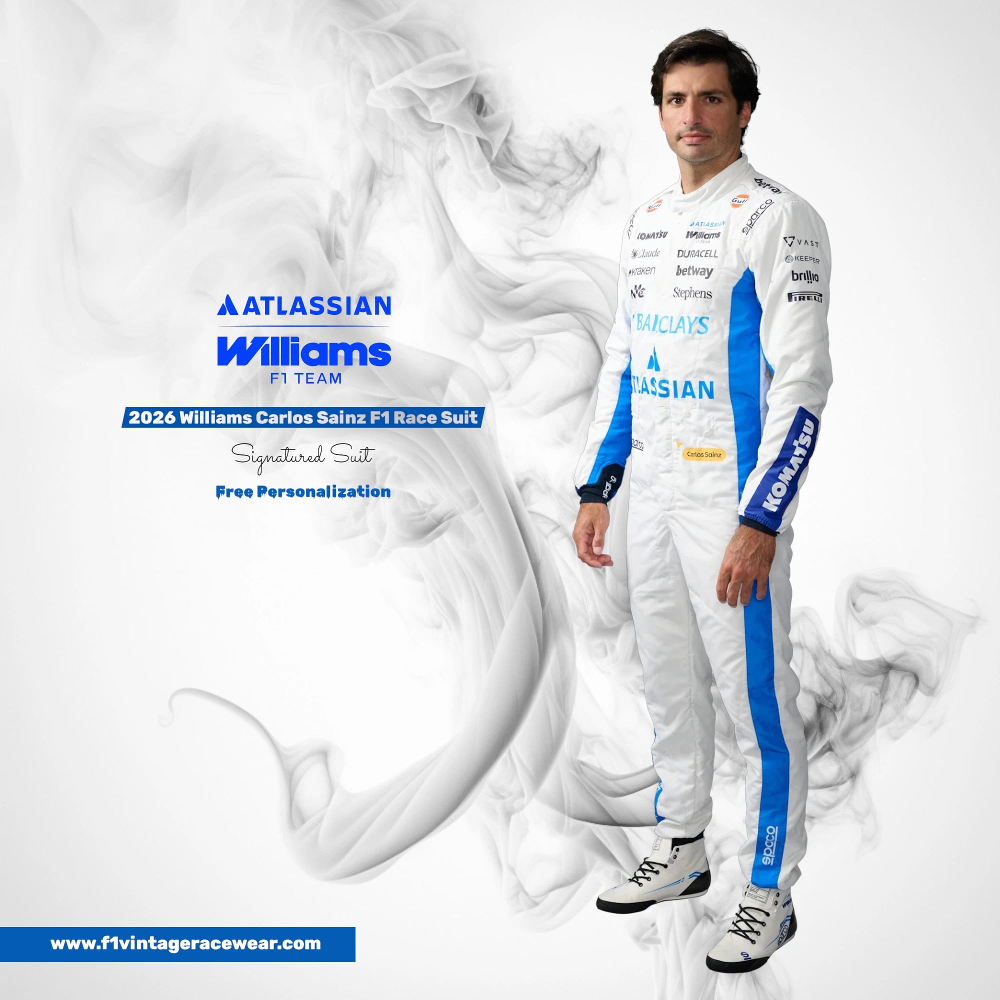 - Inspired by Carlos Sainz’s 2026 Williams Racing F1 driver suit