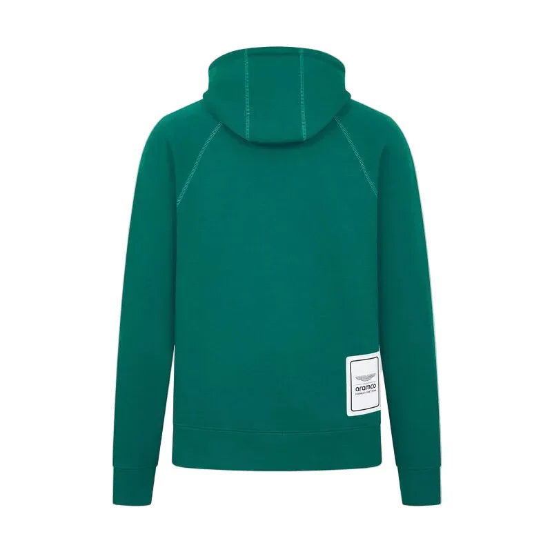 Classic Hoodie in a relaxed, oversized fit. Minimalist look, with dropped shoulder crossover stitched seams and a contrast colour lined hood with jacquard drawstrings. The Aston Martin Formula One® Team logo sits proudly on the front and back.