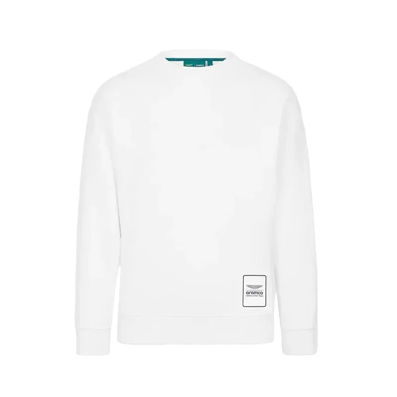 Classic crew neck Sweatshirt in a relaxed, oversized fit. Minimalist look, with dropped shoulder crossover stitched seams and a subtle rubberized Aston Martin Formula One® Team logo badge on the lower front.