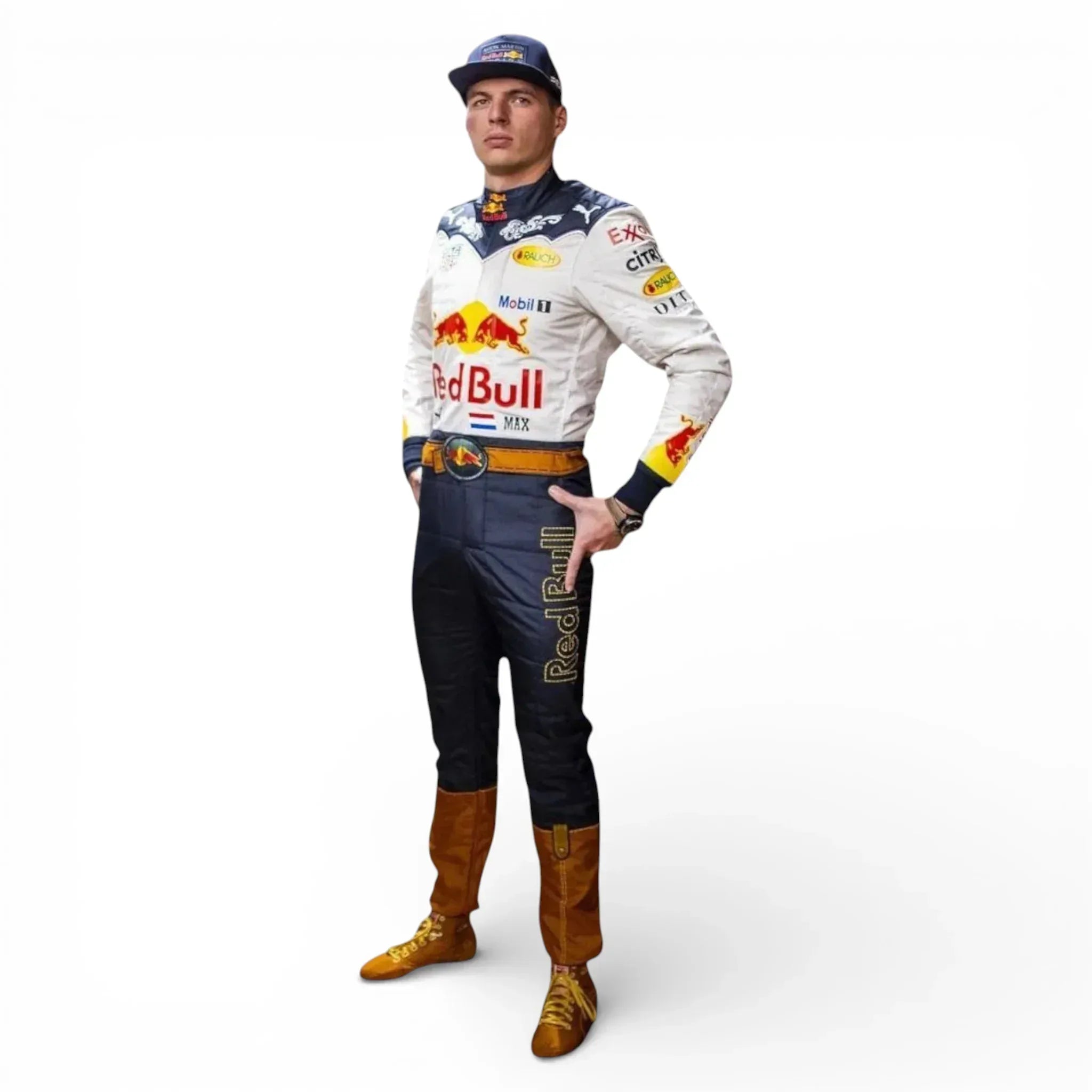 Celebrate one of Formula 1’s most iconic special designs with the 2018 Max Verstappen Red Bull Racing Cowboy Suit, inspired by the unique outfit worn during the United States Grand Prix weekend. Blending Red Bull Racing’s bold identity with Texas-inspired cowboy styling, this special-edition suit stands out as a fan favorite and a memorable moment from the 2018 F1 season.