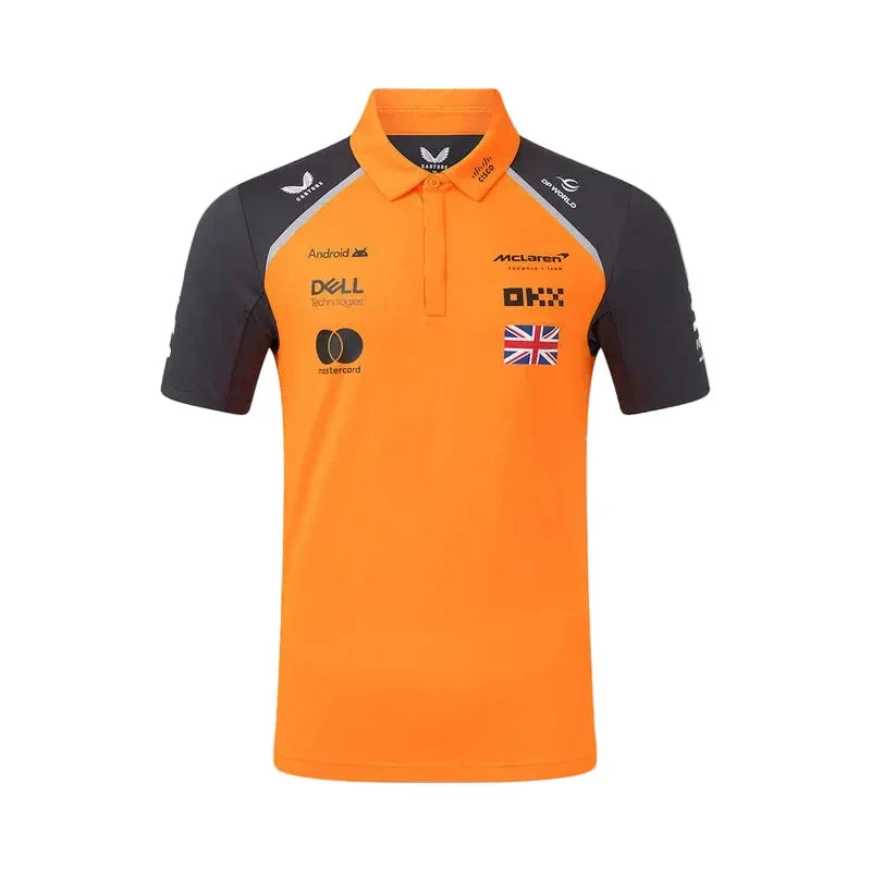 McLaren F1 2025 Lando Norris Driver Polo Engineered for motorsport enthusiasts, this official McLaren F1 driver polo celebrates Lando Norris's 2025 season. Crafted with premium performance fabrics, it delivers superior breathability and moisture management ideal for active wear. The authentic team branding and precision tailoring reflect Formula 1's exacting standards. Whether worn trackside or casually, this polo combines technical excellence with contemporary styling, making it an essential piece for dedicated fans and collectors alike.