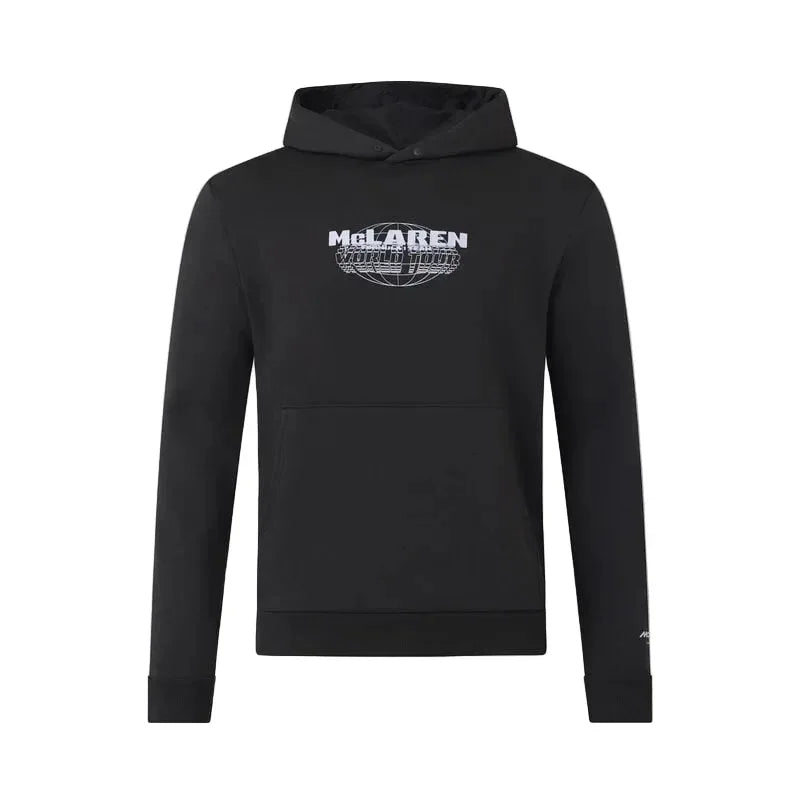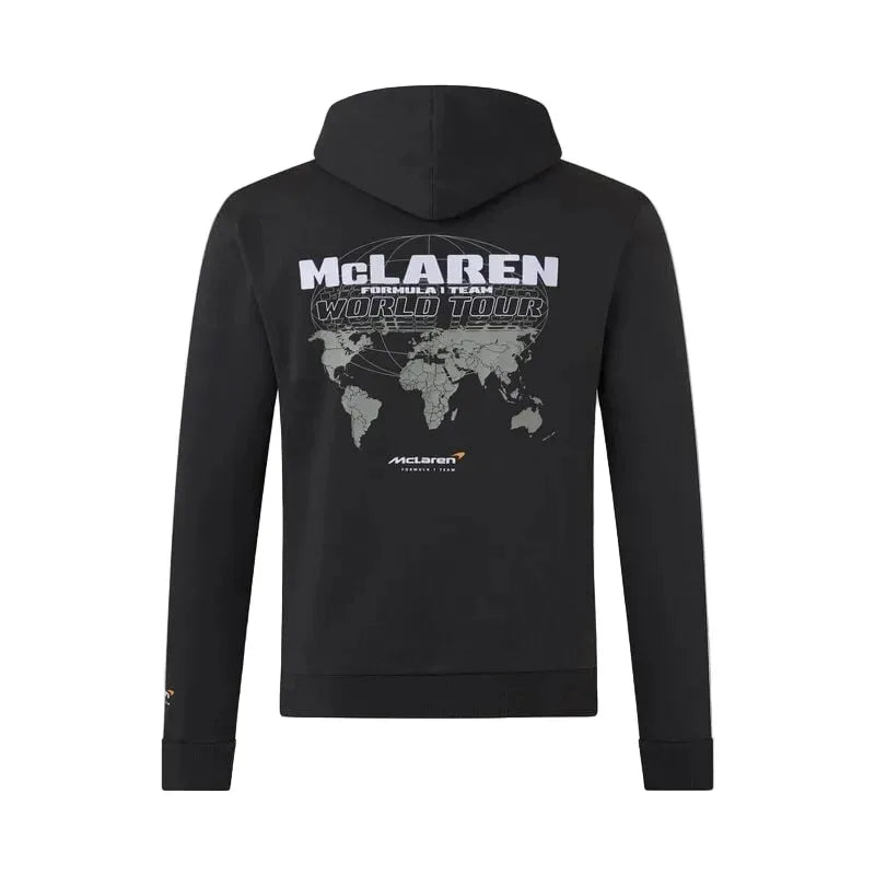 Part of the McLaren Formula 1 Team fan collection, the World Tour Hoodie comes in 100% Cotton and celebrates the international glamour of the Formula 1 season with graphic prints front and back.
