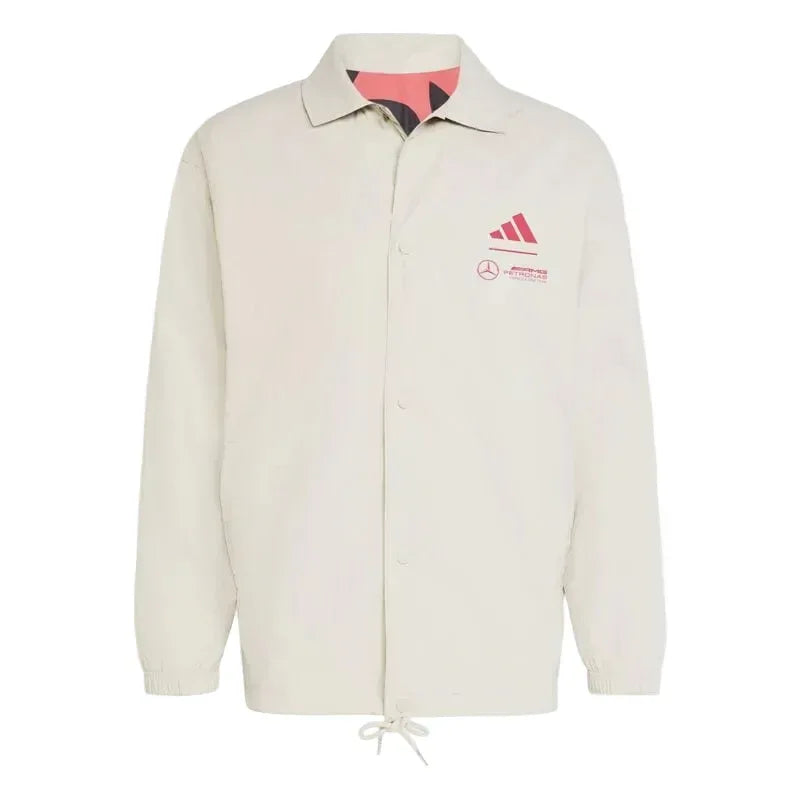 Turn up the heat with the Summer Pack for Mercedes-AMG Petronas Formula One Team, by adidas motorsport. The stylish adidas Coach Jacket, intially launched in line with the 2025 Formula 1 Miami GP, features the team and adidas logo lockup on a classic button up silhouette.